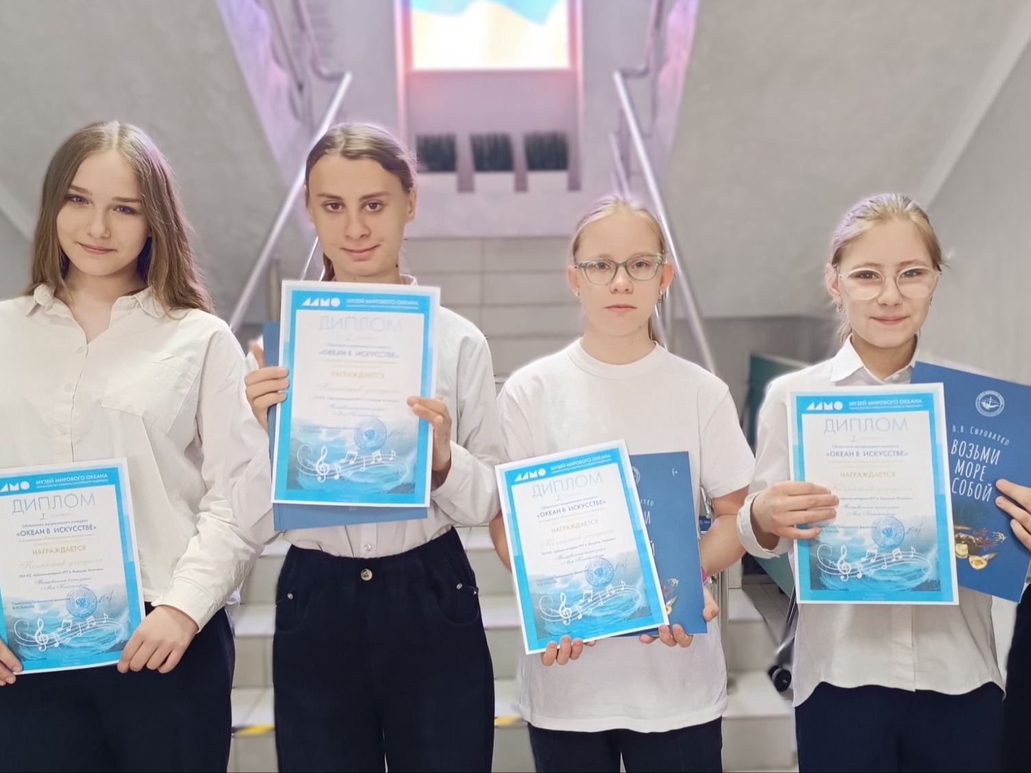 Областной музыкальный конкурс музея Мирового океана «Океан в искусстве». Две команды стали лауреатами конкурса, проявив свой талант и творческую натуру. Ребята показали мастерство исполнения и любовь к родному краю, за что получили заслуженные награды и грамоты.