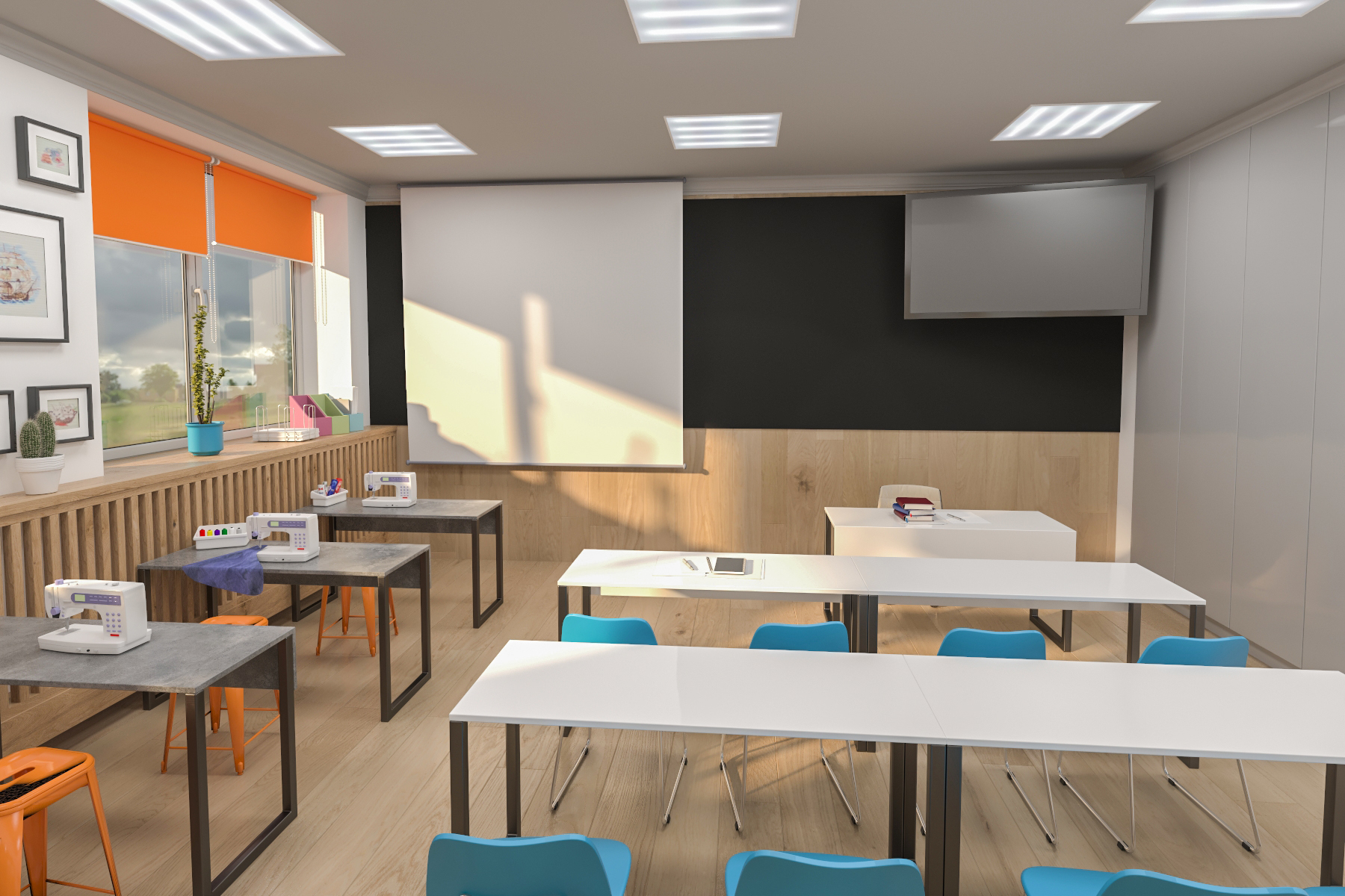 Учебная мастерская оснащена современным оборудованием в соответствии с требованиями ФГОС, СанПиН, ГОСТов, всем необходимым для обучения швейным навыкам и созданию несложного дизайна домашнего интерьера. Инновационное направление - создание дизайна домашнего интерьера (изготовление скатертей и салфеток, интерьерных подушек, штор, текстильных органайзеров, полотенец и прихваток для кухни и др.).